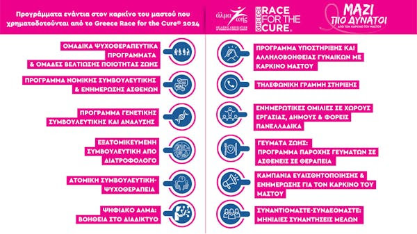 Greece Race for the Cure® 2024: Τα προγράμματα που χρηματοδοτεί